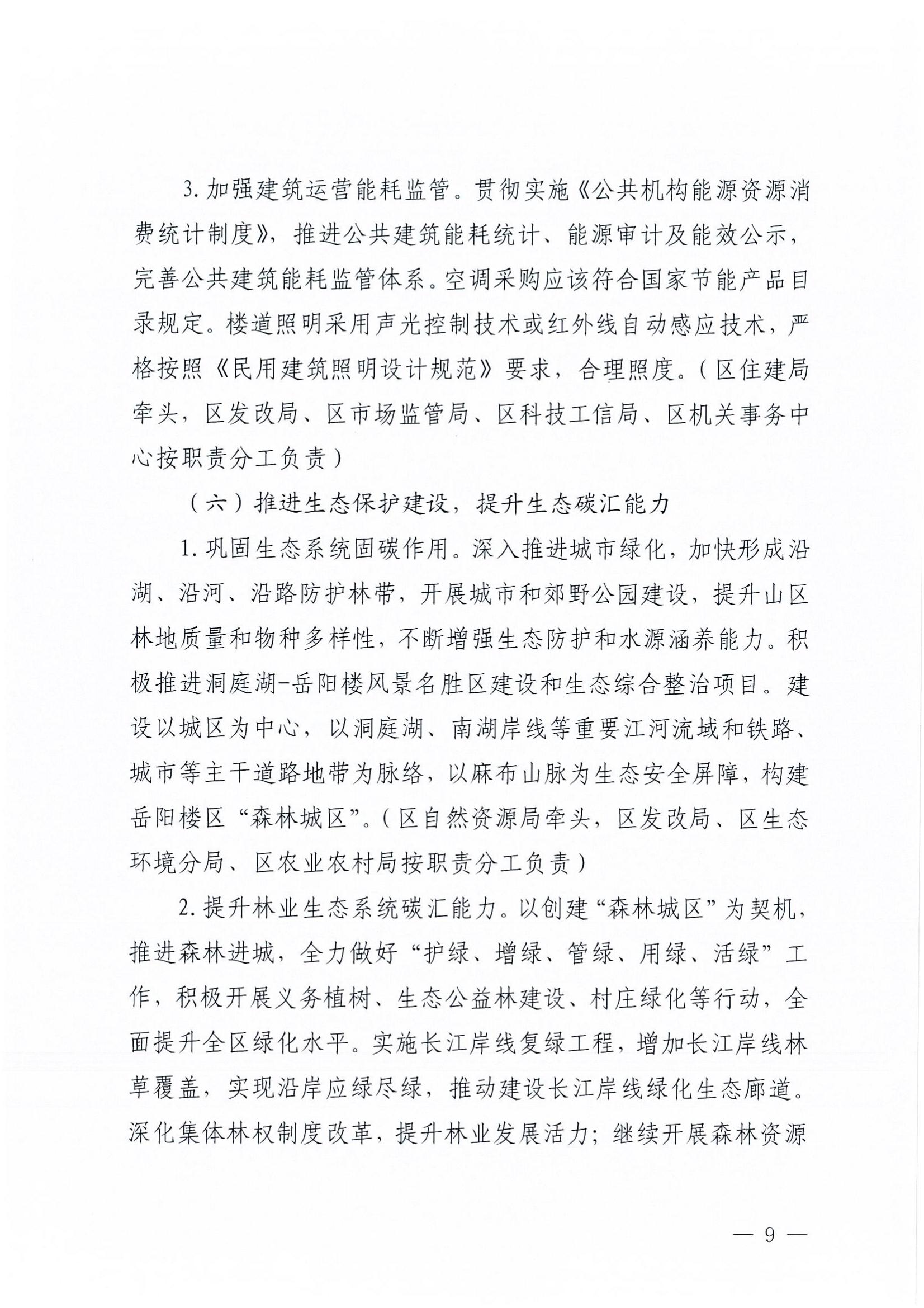 3月20日,湖南岳陽(yáng)市岳陽(yáng)樓區發(fā)展和改革局發(fā)布關(guān)于印發(fā)岳陽(yáng)市岳陽(yáng)樓區碳達峰實(shí)施方案的通知。通知指出,“十四五”期間,全區產(chǎn)業(yè)結構和能源結構明顯優(yōu)化,工業(yè)企業(yè)用能效率穩步提升,能源轉型成效初顯,煤炭消費總量得到合理控制,光伏等新能源裝機規模大幅提高,能源消費強度與碳排放強度進(jìn)一步下降。到2025年,單位地區生產(chǎn)總值能耗下降率、單位地區生產(chǎn)總值二氧化碳排放下降率確保完成市下達目標,非化石能源消費比重提高到20%,光伏發(fā)電裝機總規模達到2萬(wàn)千瓦,森林覆蓋率穩定保持在13.8%,交通、建筑等重點(diǎn)領(lǐng)域碳強度持續下降。