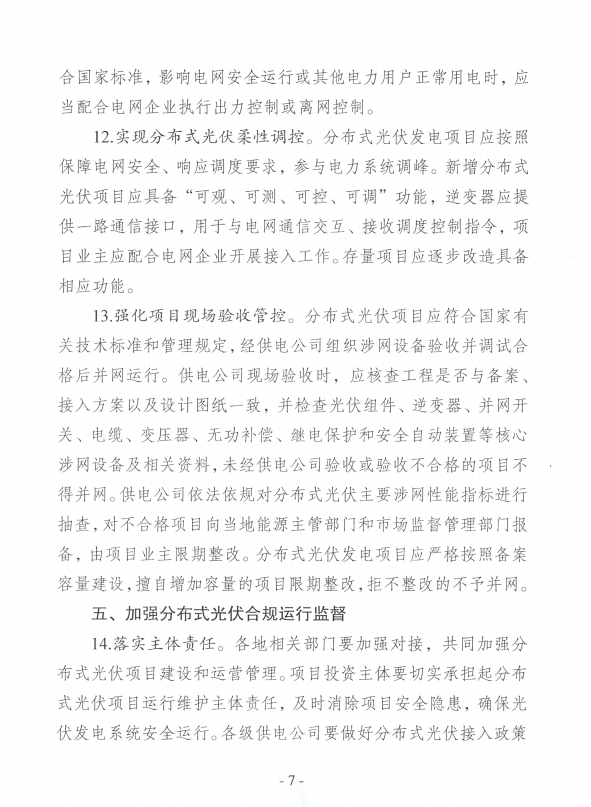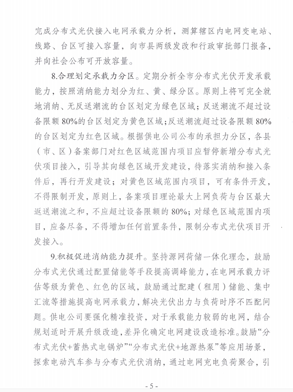 按照“政府引導、市場(chǎng)主導”原則,鼓勵各類(lèi)市場(chǎng)主體公平參與分布式光伏開(kāi)發(fā)建設、運營(yíng)和管理,根據分布式光伏建設空間、負荷水平和電網(wǎng)承載力等資源條件,科學(xué)規劃分布式光伏項目的布局、規模、進(jìn)度以及與充電、儲能等基礎設施的協(xié)調發(fā)展。