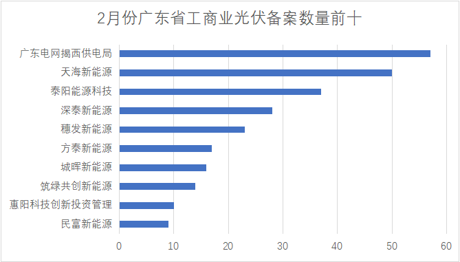 從建設單位的角度來(lái)看,2025年2月份廣東省工商業(yè)備案項目參與企業(yè)907家,包含南方電網(wǎng)、國能等國企;天海新能源、泰陽(yáng)能源、深泰新能源等民營(yíng)企業(yè)。
