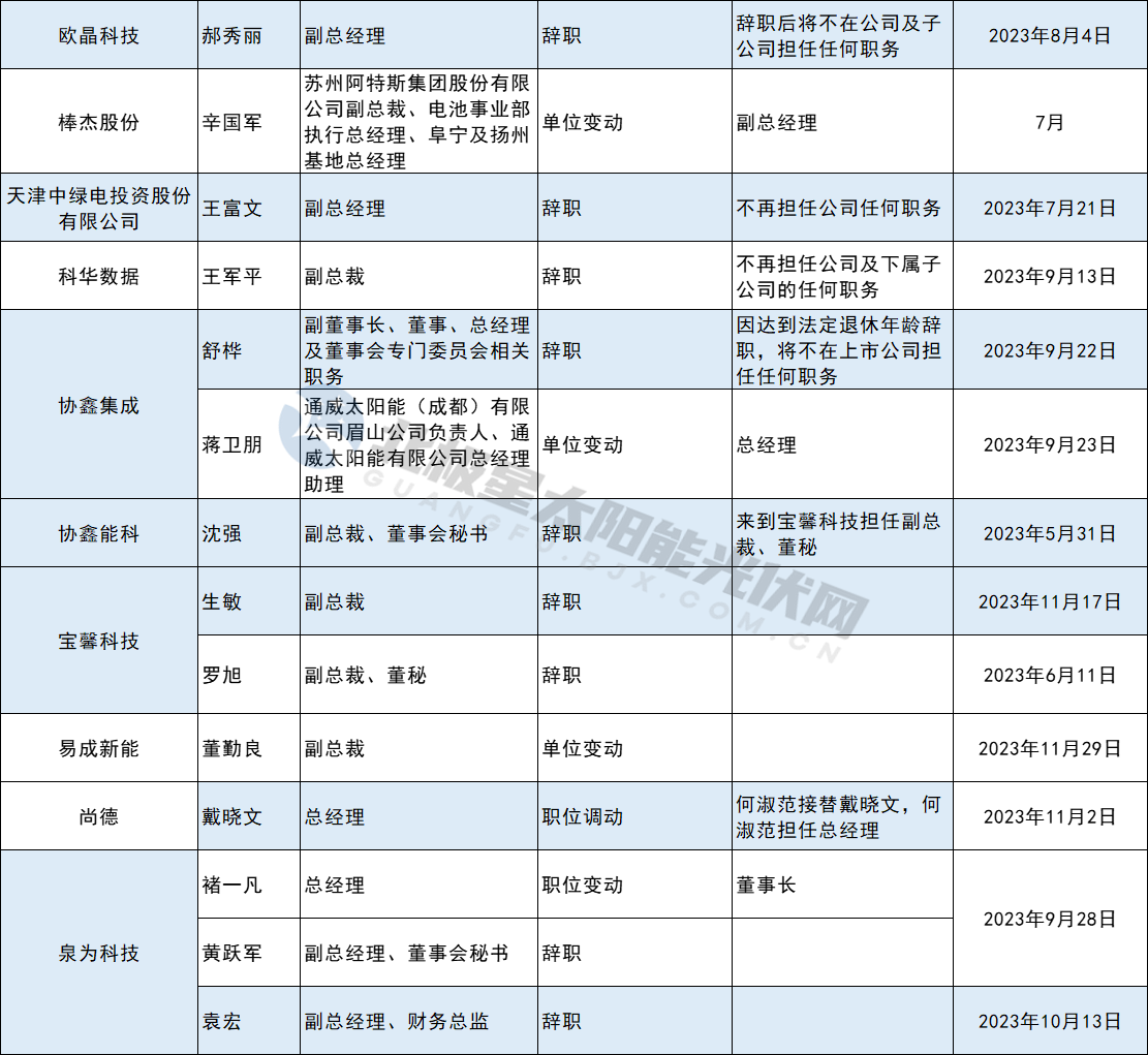 技術(shù)型人才的人事調整也不在少數,如大全能源、海優(yōu)新材、高測股份、阿特斯等。