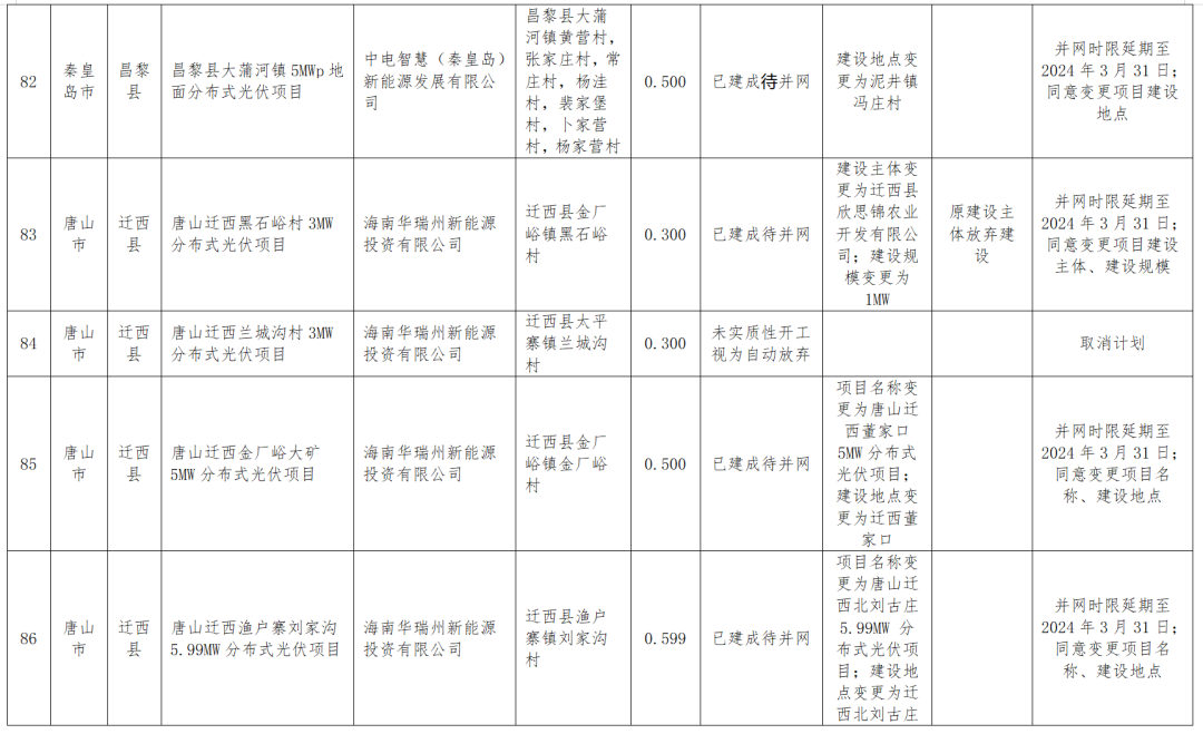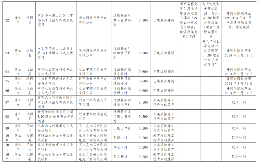 為進(jìn)一步加強風(fēng)電、光伏項目管理,我委組織相關(guān)市對參與四季度風(fēng)光集中并網(wǎng)行動(dòng),且2023年底已到期的集中式風(fēng)電、光伏項目研究提出了處置意見(jiàn),對2023年地面分布式光伏項目進(jìn)行了驗收。結合相關(guān)市處置意見(jiàn)和驗收意見(jiàn),考慮大雪等極端天氣因素影響,研究提出了項目調整意見(jiàn),現予以公示。具體項目名單及調整意見(jiàn)見(jiàn)附件。