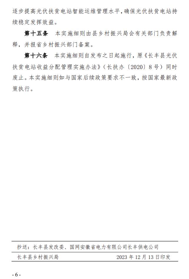 安徽省合肥市長(cháng)豐縣人民政府正式印發(fā)《長(cháng)豐縣光伏扶貧電站收益分配管理實(shí)施細則》,文件明確所指光伏扶貧電站包括戶(hù)用光伏扶貧電站、村級光伏扶貧電站。該辦法適用于長(cháng)豐縣已納入國家可再生能源電價(jià)附加資金補助(光伏扶貧)第一、二、三批次目錄和第四批納入國家規模范圍的戶(hù)用、村級光伏扶貧電站。
