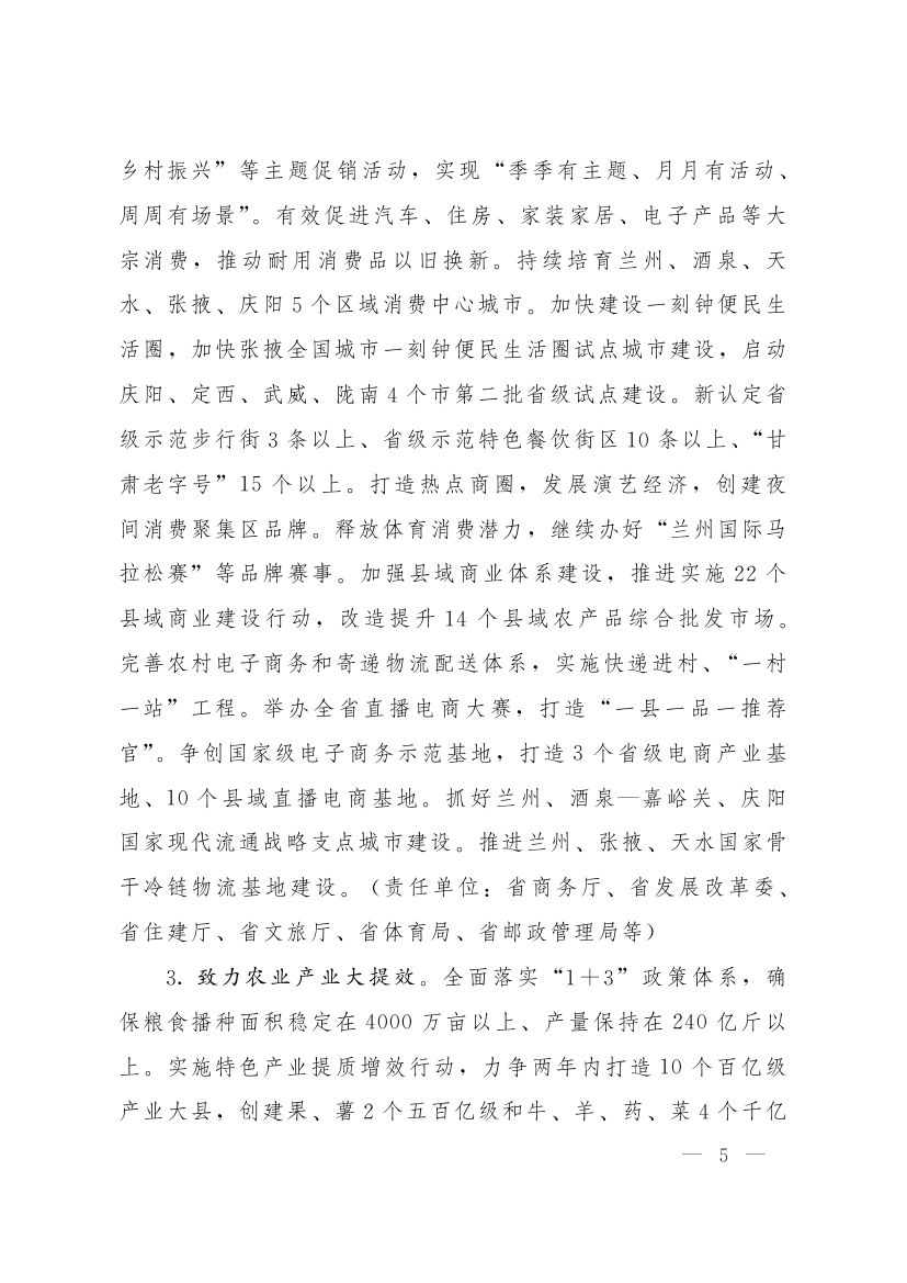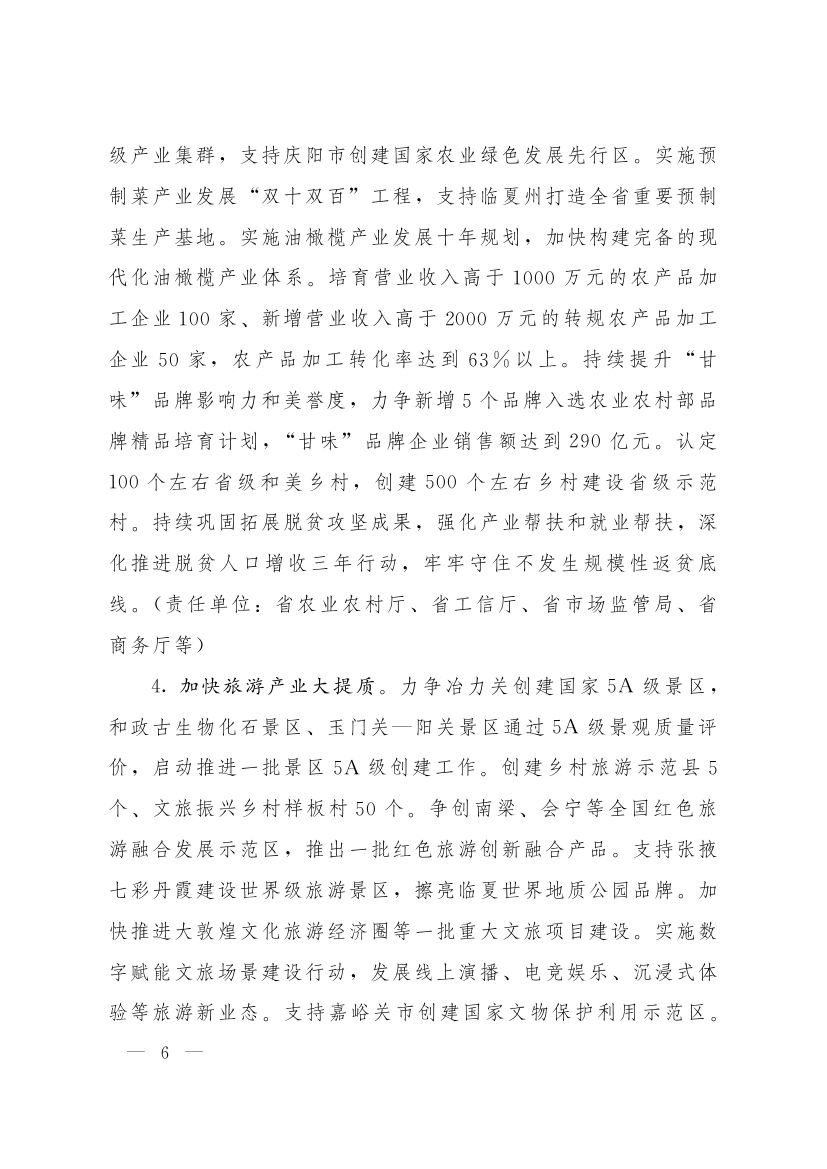 3月19日,甘肅省人民政府發(fā)布《甘肅省人民政府辦公廳關(guān)于印發(fā)全面貫徹落實(shí)省委經(jīng)濟工作會(huì )議和省兩會(huì )精神聚焦聚力打好高質(zhì)量發(fā)展“六場(chǎng)戰役”行動(dòng)方案的通知》。