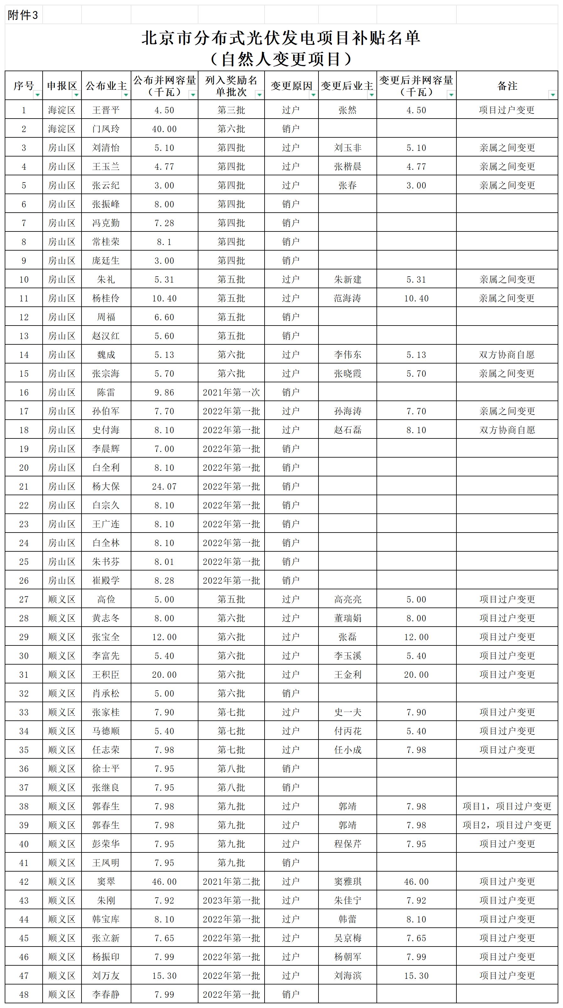 3.北京市分布式光伏發(fā)電項目補貼名單(自然人變更項目)