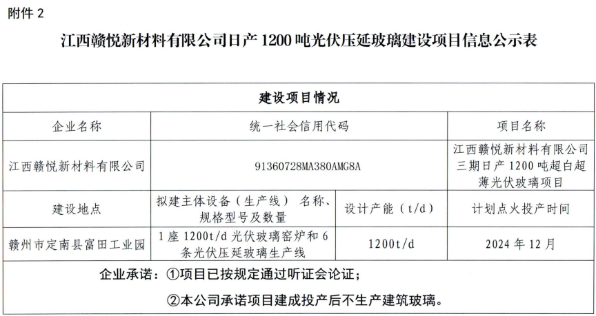 關(guān)于對江西信義光伏玻璃有限公司、江西贛悅新材料有限公司光伏壓延玻璃建設項目信息的公示